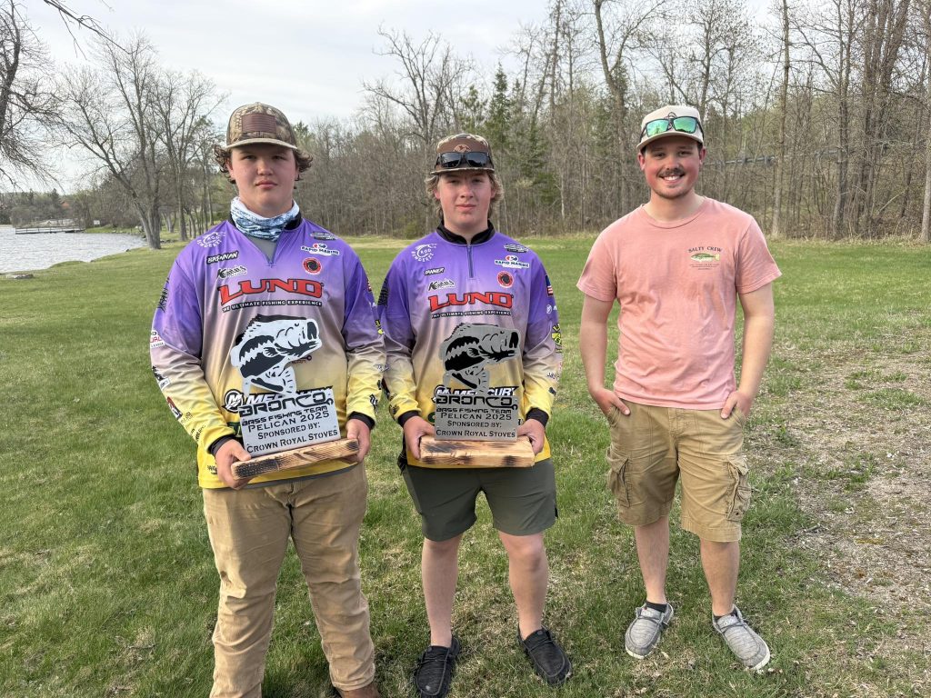 Sunday May 11th, the Broncos Bass Fishing team was in the water for the first time this summer out on Pelican Lake. There were 14 boats and captains with 2 anglers per boat with the two winning anglers being last season’s Angler of the Year, Tanner Gustafson and partner Brennan Conat. They were led by Boat Captain Cadyn Zahn, and the tree won the first tourney with a bag of 22lbs 7oz! Brennan Conat also had the biggest fish with a 20.75” large mouth.