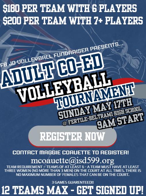 Adult Co-Ed Volleyball Tournament Fundraiser in Fertile