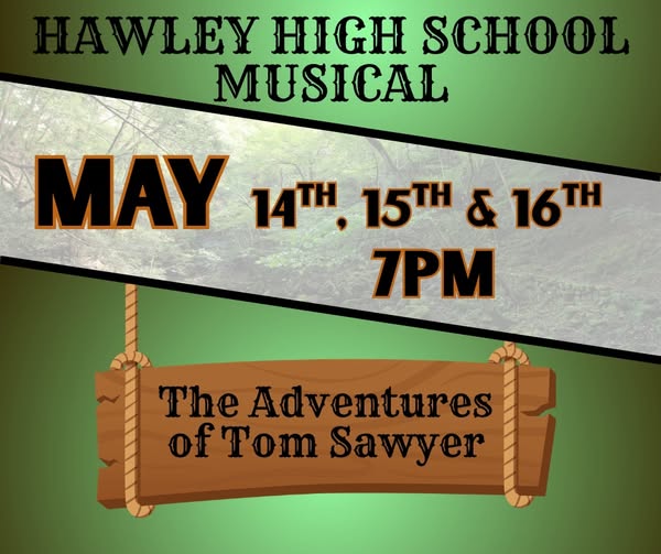 Home Events KRJB-KRJM-KKCQ Community Events Hawley High School Musical Tom Sawyer Hawley High School Musical Tom Sawyer + Add to Google Calendar + iCal / Outlook export 00 days 00 hours 00 minutes 00 seconds Tags: Adventures of Tom Sawyer, Hawley School, Musical